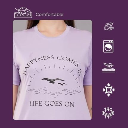 Women's Printed Cotton T-Shirt | Round Neck Half Sleeves | Regular Fit Summer T Shirt | Lavender Color