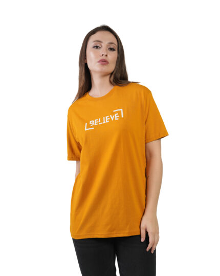 Women T-Shirt Pattern Printed(Believe) Round Neck Half Sleeves Solid Maroon Color