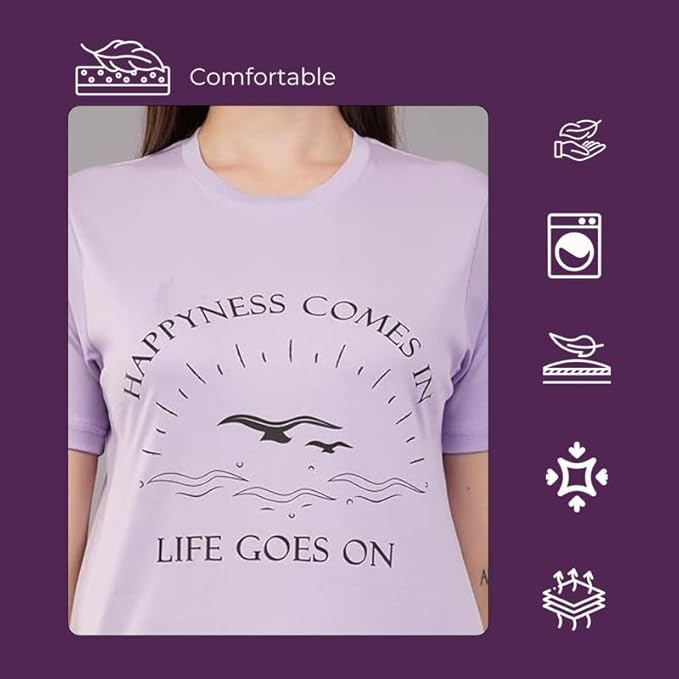 Women’s Printed Cotton T-Shirt | Round Neck Half Sleeves | Regular Fit Summer T Shirt | Lavender Color